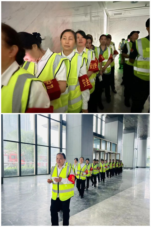平日里,他們是樓宇環(huán)境的“守護者”;危急時,他們是疏散逃生的“引路人”! 演習(xí)中,江城清洗事業(yè)部全體成員擔(dān)任疏散組核心角色。