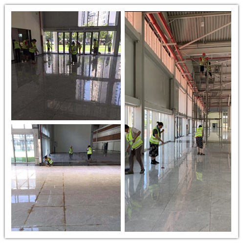 2019年7月,武漢江城清洗工程部開荒保潔人員為武漢軍運村餐廳提供開荒保潔服務。當時正值酷暑,天氣異常炎熱。但是我司的開荒保潔人員不畏炎熱,圓滿的完成了任務。獲得了甲方**的好評!