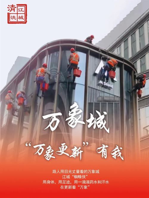 新的一年,萬象城將以嶄新面貌迎客。江城清洗工程隊期望它能匯聚更多歡樂。若您也想讓地標建筑外墻潔凈如新,江城清洗工程隊憑借其專業、專注、耐心的外墻清潔工,定是您的.佳選擇,助您共筑城市美麗風景線。