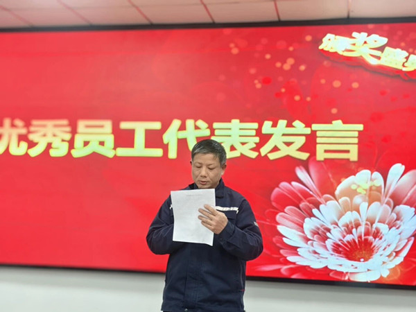優(yōu)秀員工代表劉信立登臺分享了獲獎感言,質(zhì)樸的話語傳遞著對崗位的熱愛與對江城清洗公司的感恩,也為在場同仁帶來了奮進的力量。