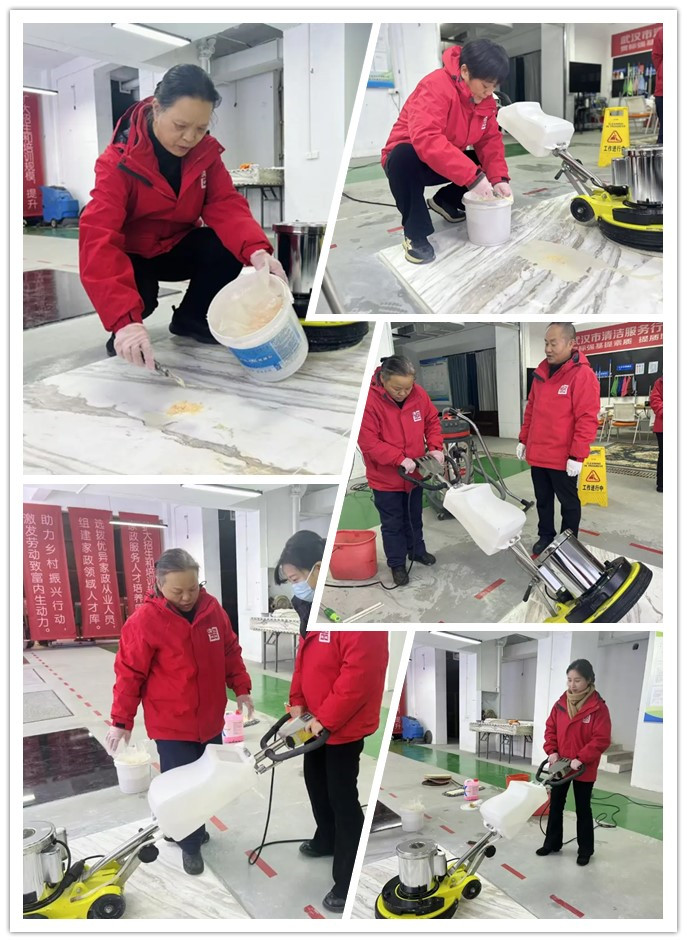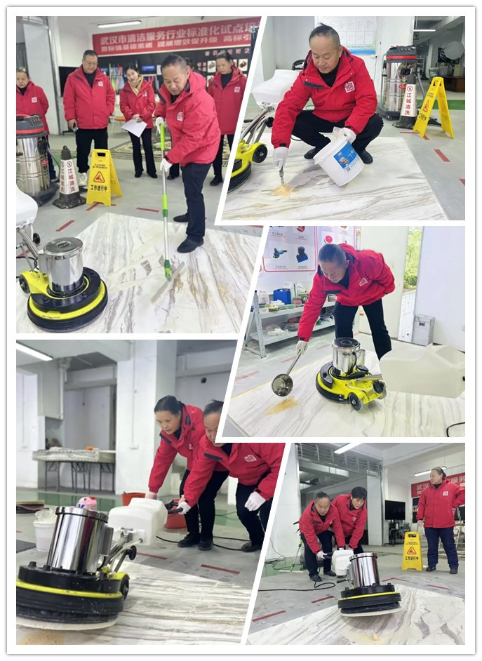 細節定標準,實操筑專業。為持續夯實服務硬實力,打造一支技術精湛、高效協作的服務團隊,江城清洗聚焦核心服務場景,針對性開展專項技能培訓。近期,我司機動隊與事業部相繼啟動石材研磨、結晶專項培訓,來自各業務線的骨干力量齊聚培訓現場,開啟了一場聚焦實操、淬煉本領的“進階之旅”。