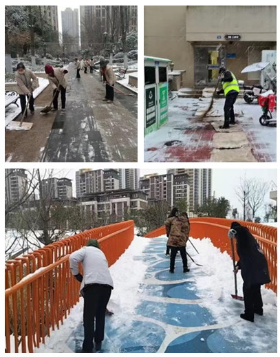 武漢江城清洗服務有限公司各項目作業現場秩序井然、分工明確、協作高效。在出入口、主干道、公共活動區域等人員流動密集的關鍵點位,保潔員們的身影穿梭在皚皚白雪間,以“快、準、凈”為標準,全力推進清雪除冰工作。作業中,他們頂風冒雪、堅守崗位,彎腰揮帚掃雪、躬身鏟冰除障,每一個動作都堅定有力。針對業主出行的必經區域,開展逐區清理、逐點排查工作,全方位消除積雪隱患,做到不留任何死角。以堅守崗位的擔當筑牢冬季安全防線,全力保障業主安全出行以及正常的生產生活秩序。