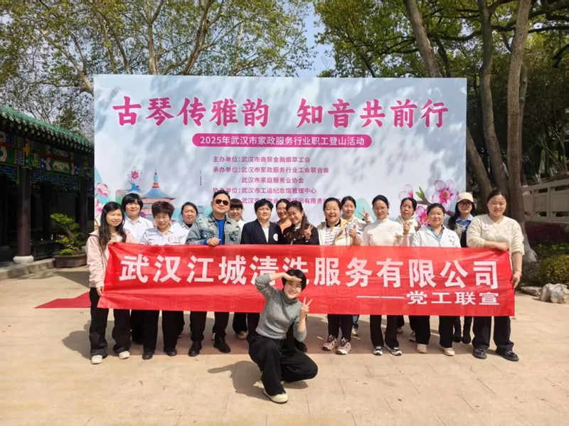 2025 年 4 月 3 日上午, “古琴傳雅韻 知音共前行” 2025年武漢市家政服務行業職工登山活動在古琴臺舉行。武漢市總工會二級巡視員周國華、武漢市總工會商貿金融煙草工會三級調研員董珊丹、武漢市家政行業工會主席楊浩、武漢市家庭服務業協會會長項丹等..出席活動。工會主席李友慧、黨支部書記方園親自帶隊,組織江城清洗公司職工代表積極響應,熱情參與此次活動。
