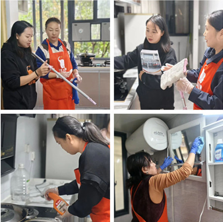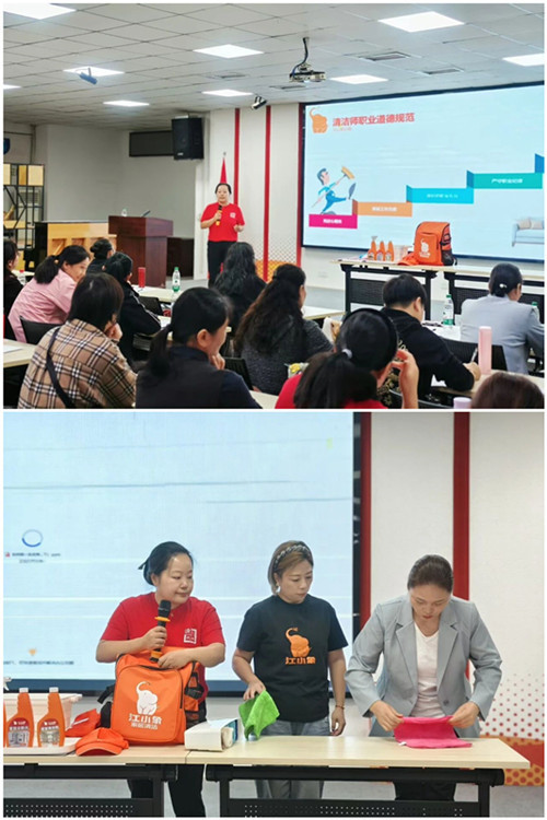 錢慧琴、蔣蘭蘭兩位講師則通過場景化教學,示范入戶溝通話術、演練精細擦窗流程、規范六區清潔操作,傳遞可直接復用的實戰經驗。