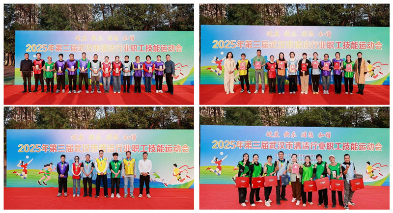 2025年10月28日下午,武漢市清潔行業職工技能運動會成功舉辦。全市清潔行業近40家單位的130余名職工齊聚賽場,武漢江城清洗公司積極組織8名員工組成參賽隊伍參與其中,大家在賽場上活力迸發,既展現了個人的運動風采,又體現出團隊協作的力量,在汗水與歡笑中收獲榮譽的同時,也收獲了滿滿歡樂。武漢市總工會、武漢市工商聯、武漢市總工會商貿金融煙草工會、武漢市家政服務行業工會、武漢市清潔行業協會等相關單位領導出席活動。