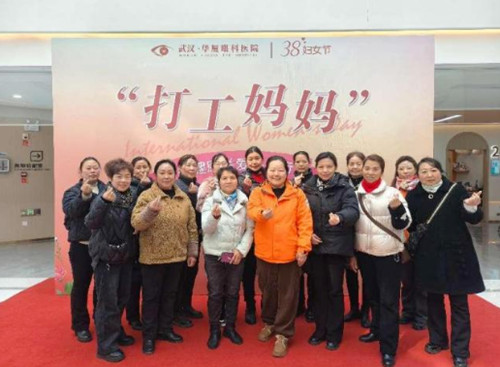 2025 年 3 月 6 日上午 9 時 30 分,由江漢區婦女聯合會主辦的 "打工媽媽" 眼健康關愛公益活動在武漢華廈眼科醫院順利舉行。武漢江城清洗服務有限公司近 20 名一 線女職工代表參與此次公益活動。